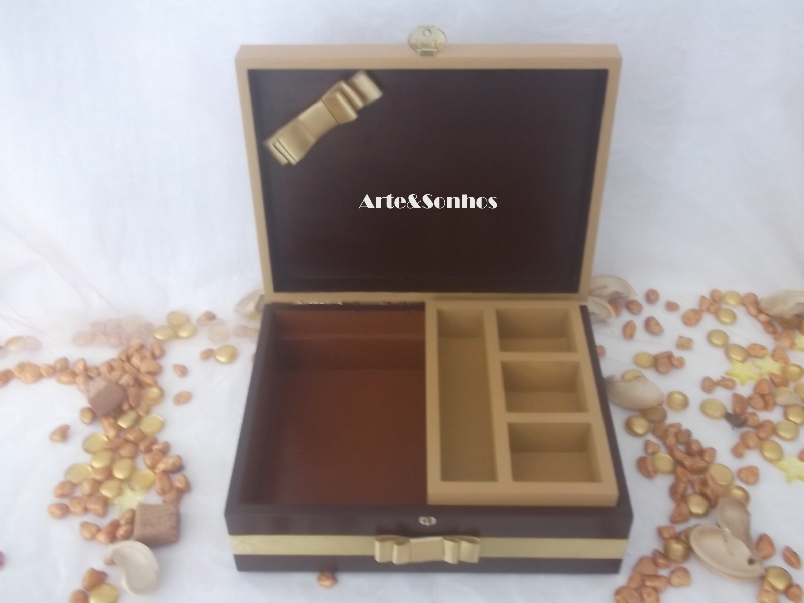 Caixas em madeira 20/13/4cm pintadas manualmente e decoradas com perolas.